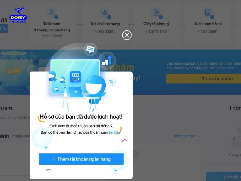 - Kích hoạt gian hàng (1-3 ngày): Sau khi Tiki duyệt sản phẩm mẫu, gian hàng sẽ được kích hoạt và hiển thị công khai.
