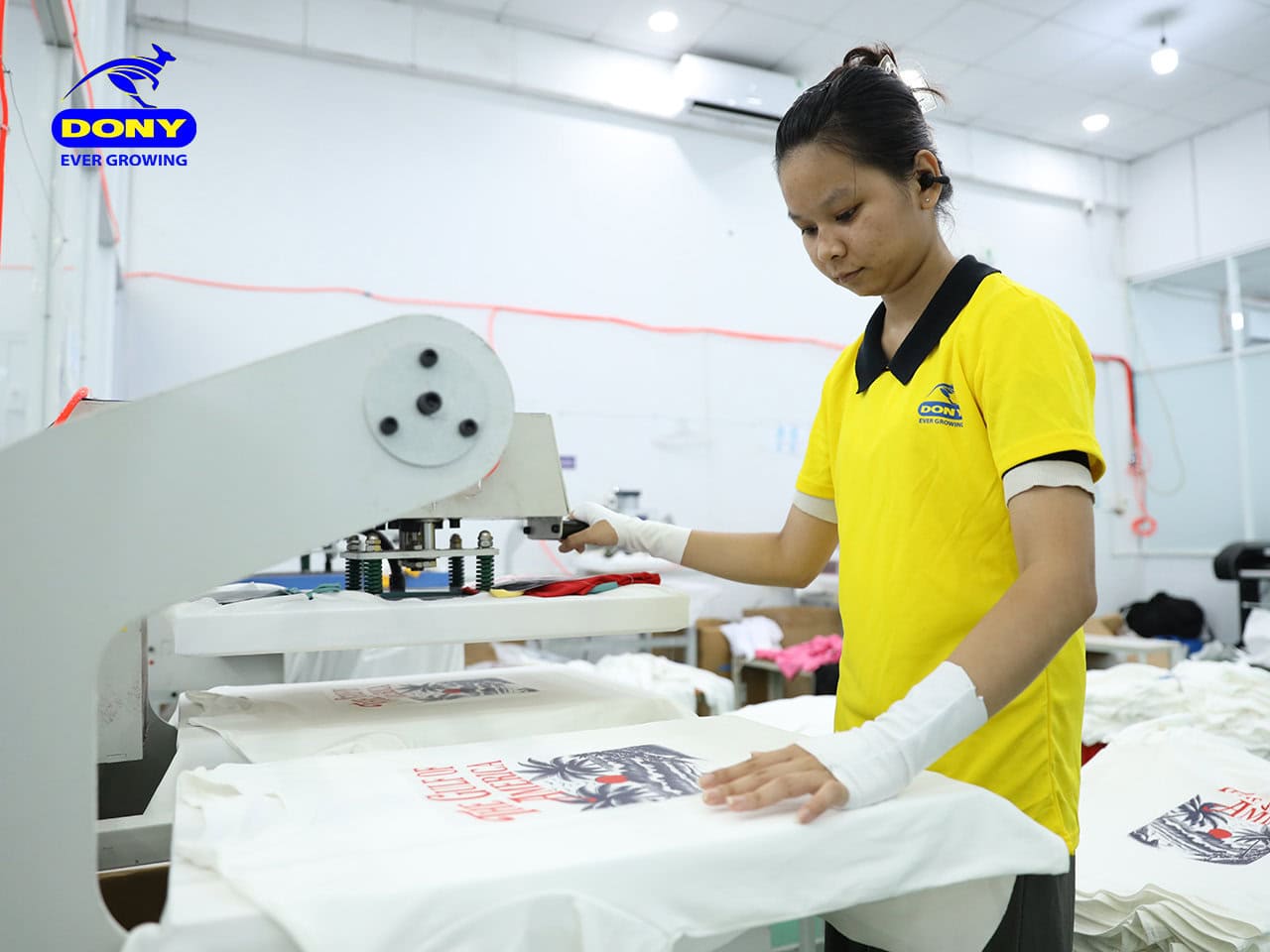 - Công Nghệ In Hiện Đại, Đa Dạng: Dony làm chủ nhiều phương pháp in ấn từ in lụa chuyên nghiệp đến các công nghệ in chuyển nhiệt, in kỹ thuật số tiên tiến. Điều này giúp Dony tạo ra các hình in sống động, không bong tróc, màu sắc chuẩn xác và bền bỉ theo thời gian.